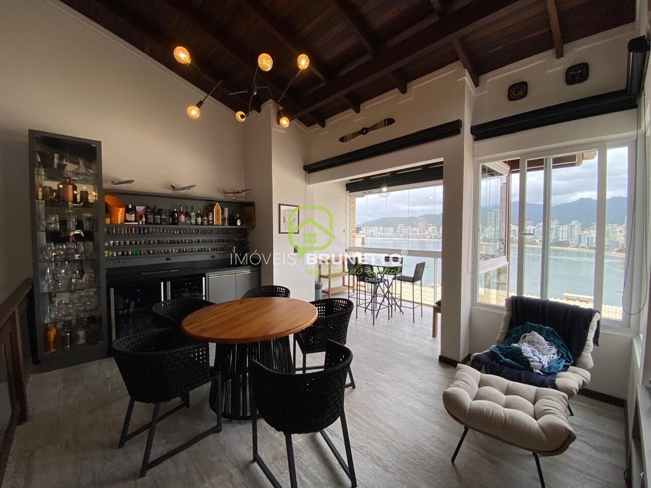 Living com Lareira e Linda Vista Mar.